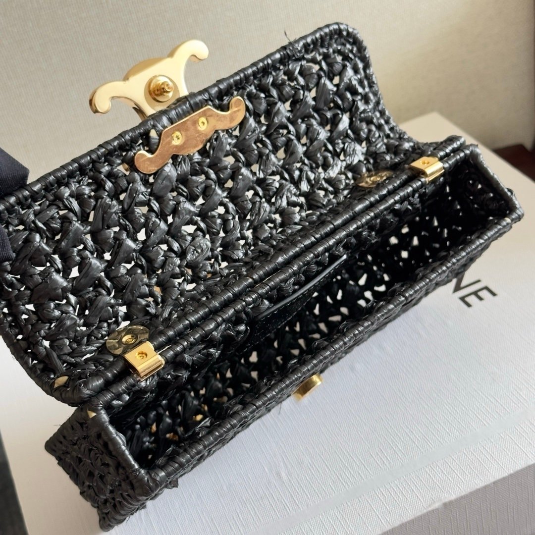 Celine Chain Shoulder Bag in Raffia Black Gold