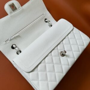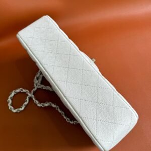 Chanel Flap Bag Caviar White Silver in Medium