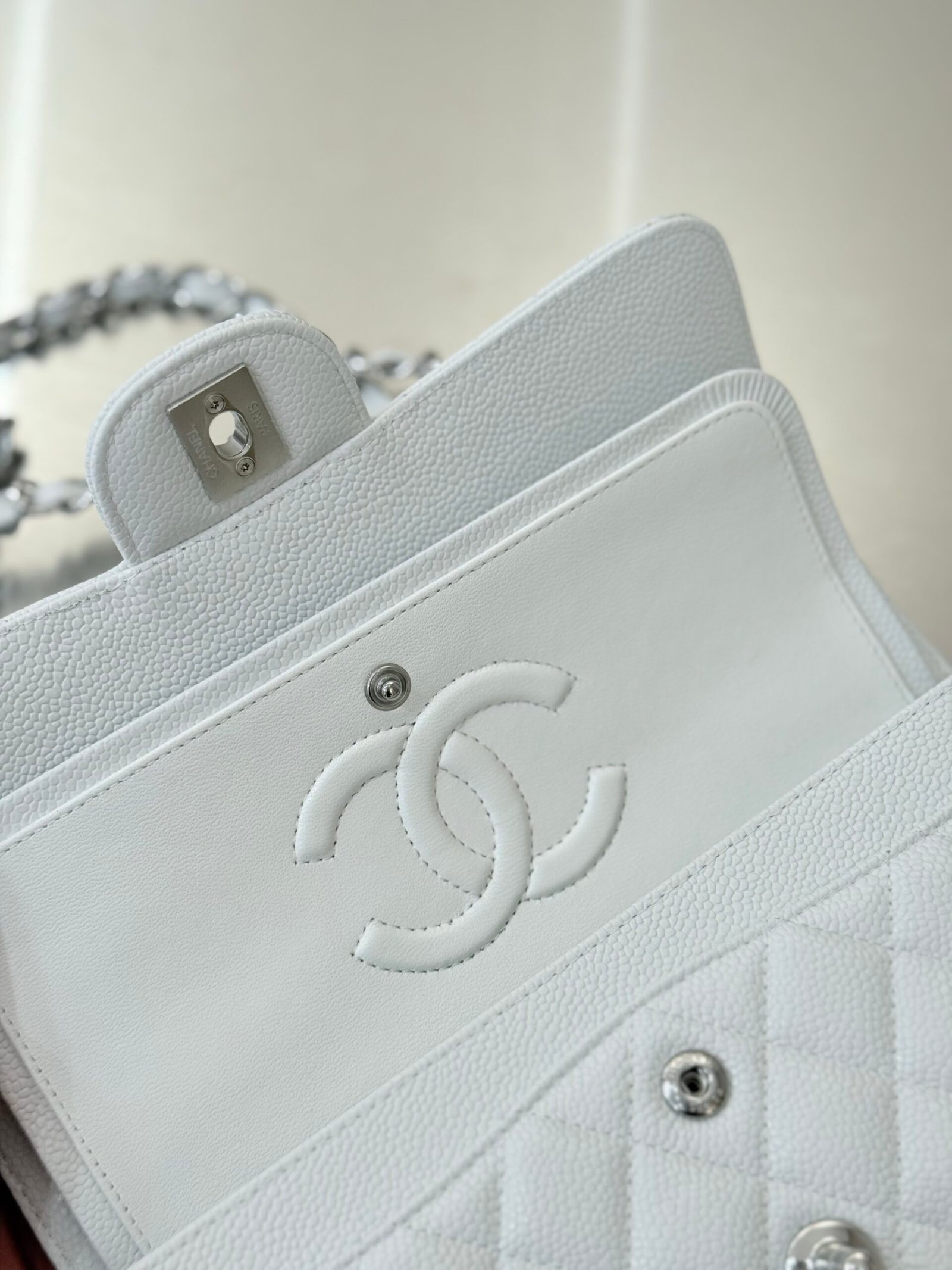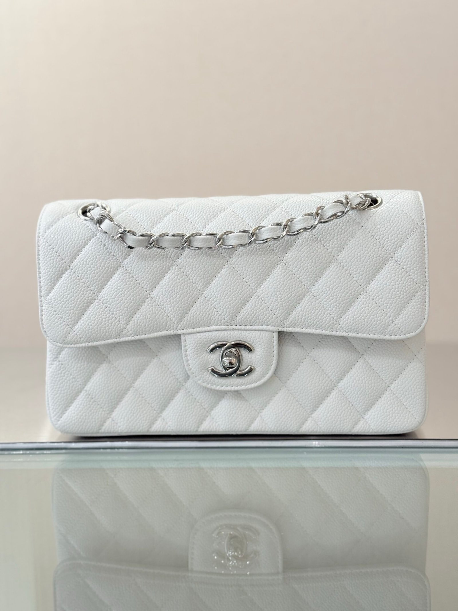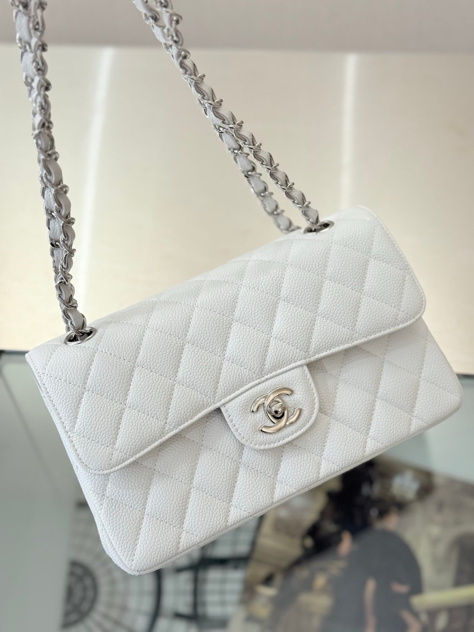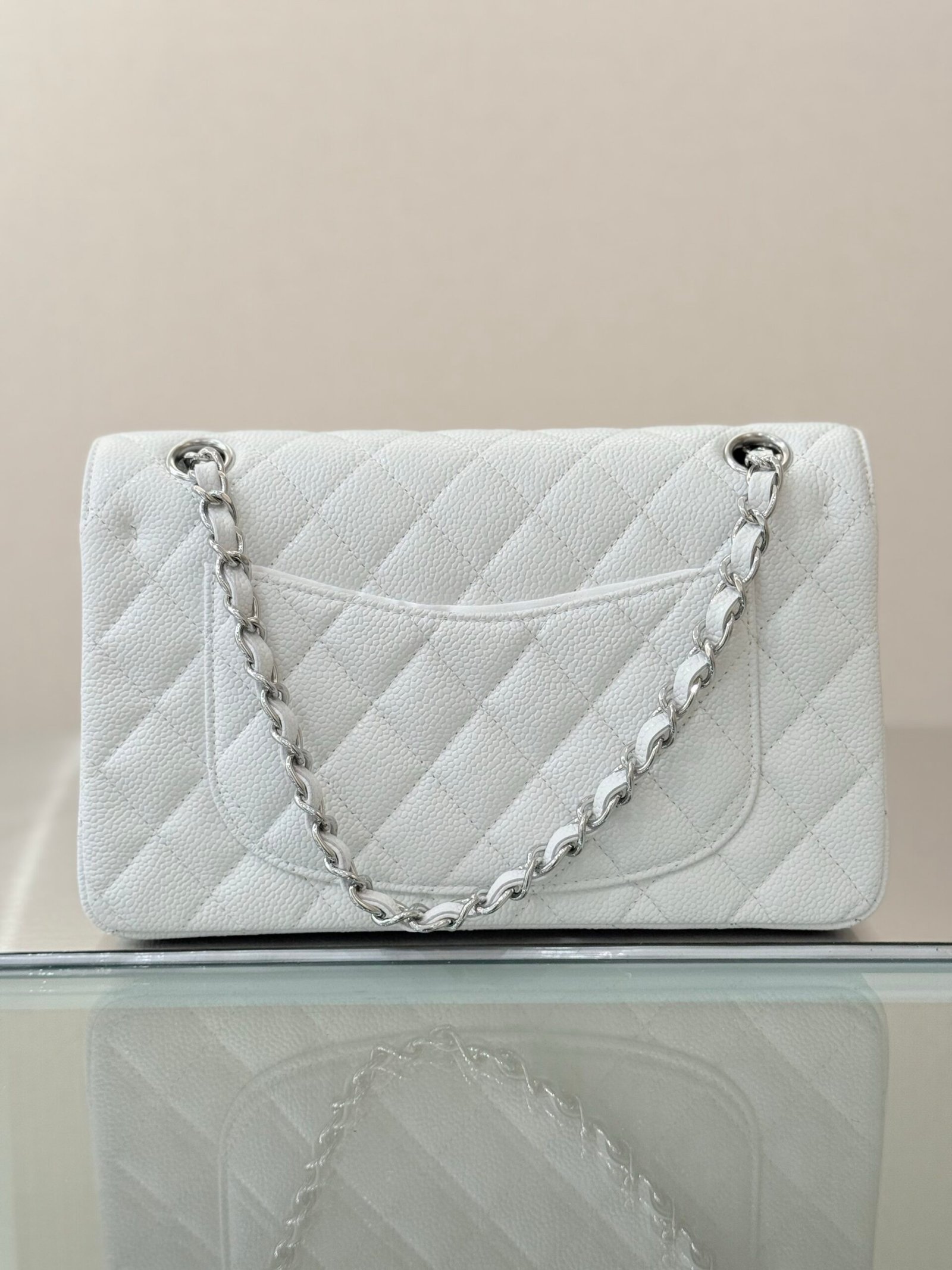 Chanel Flap Bag White Silver in Small