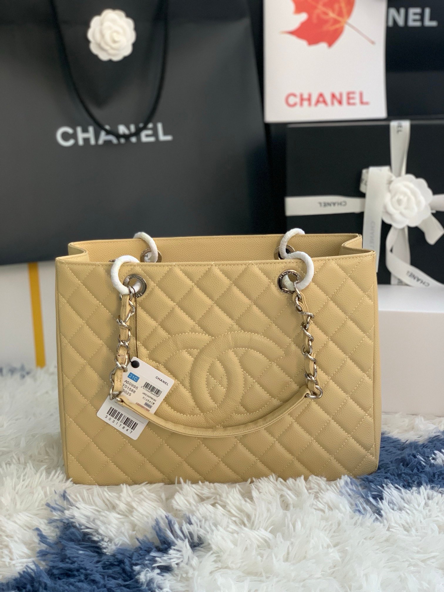 Chanel Tote Bag Beige Silver