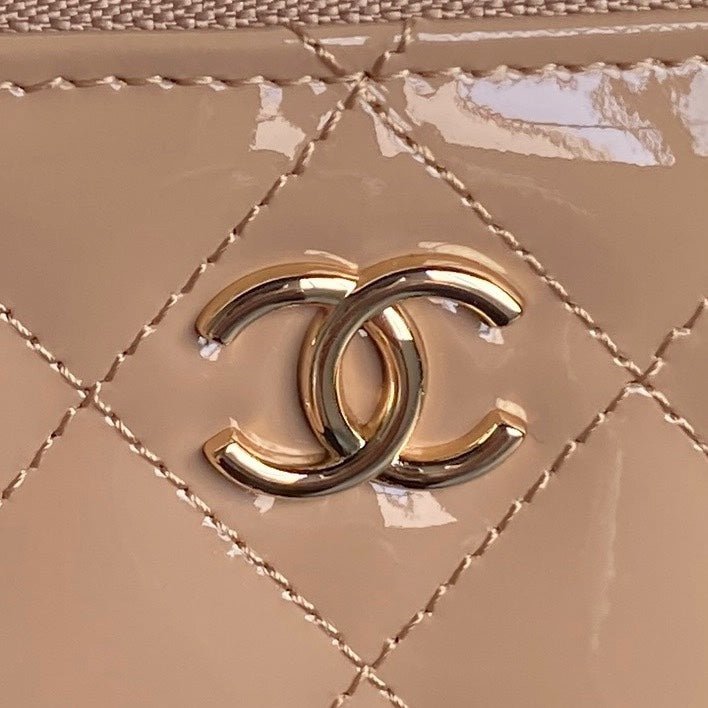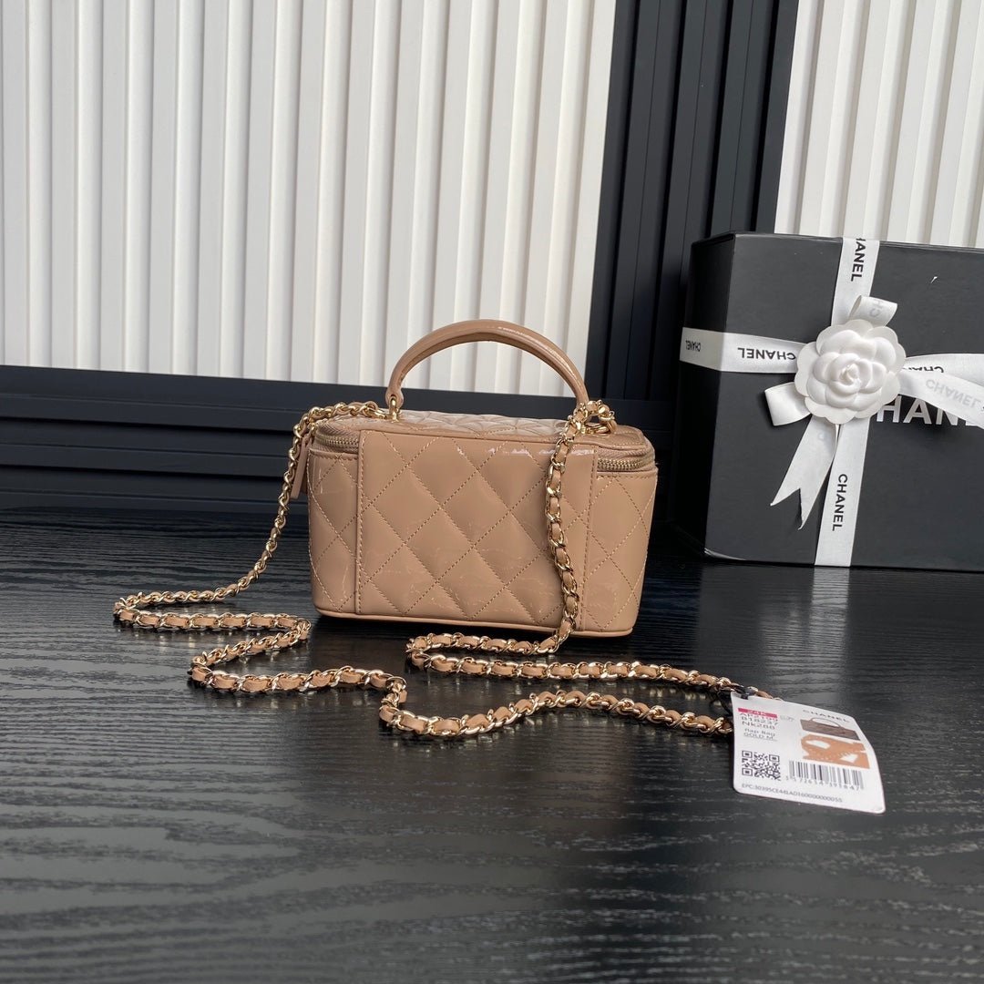 Chanel Top Handle Vanity Bag Beige Patent with Gold