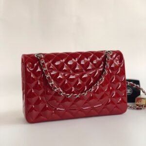 Chanel Flap Bag Red Patent with Silver