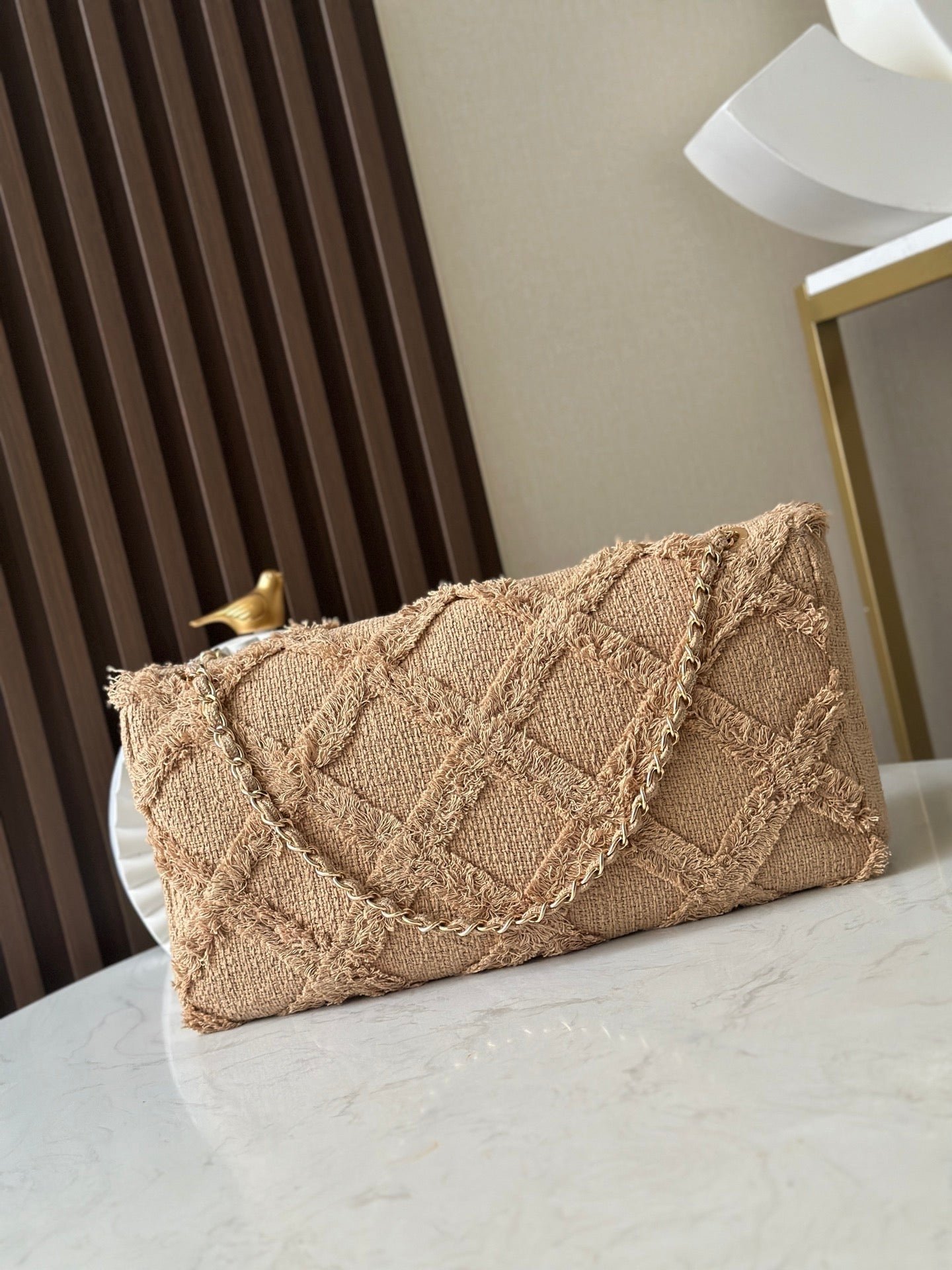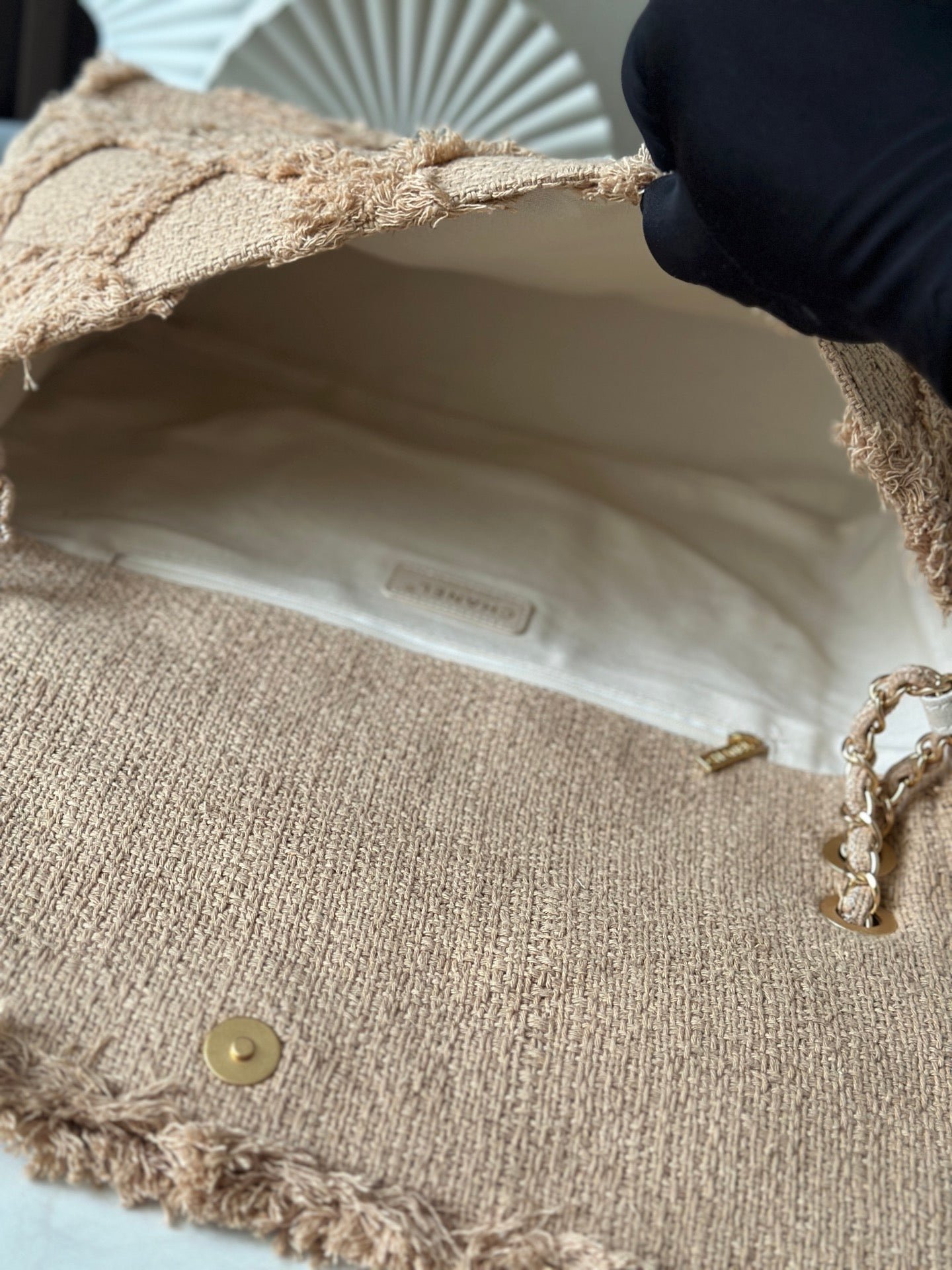 Chanel Flap Crochet Bag in Beige Gold