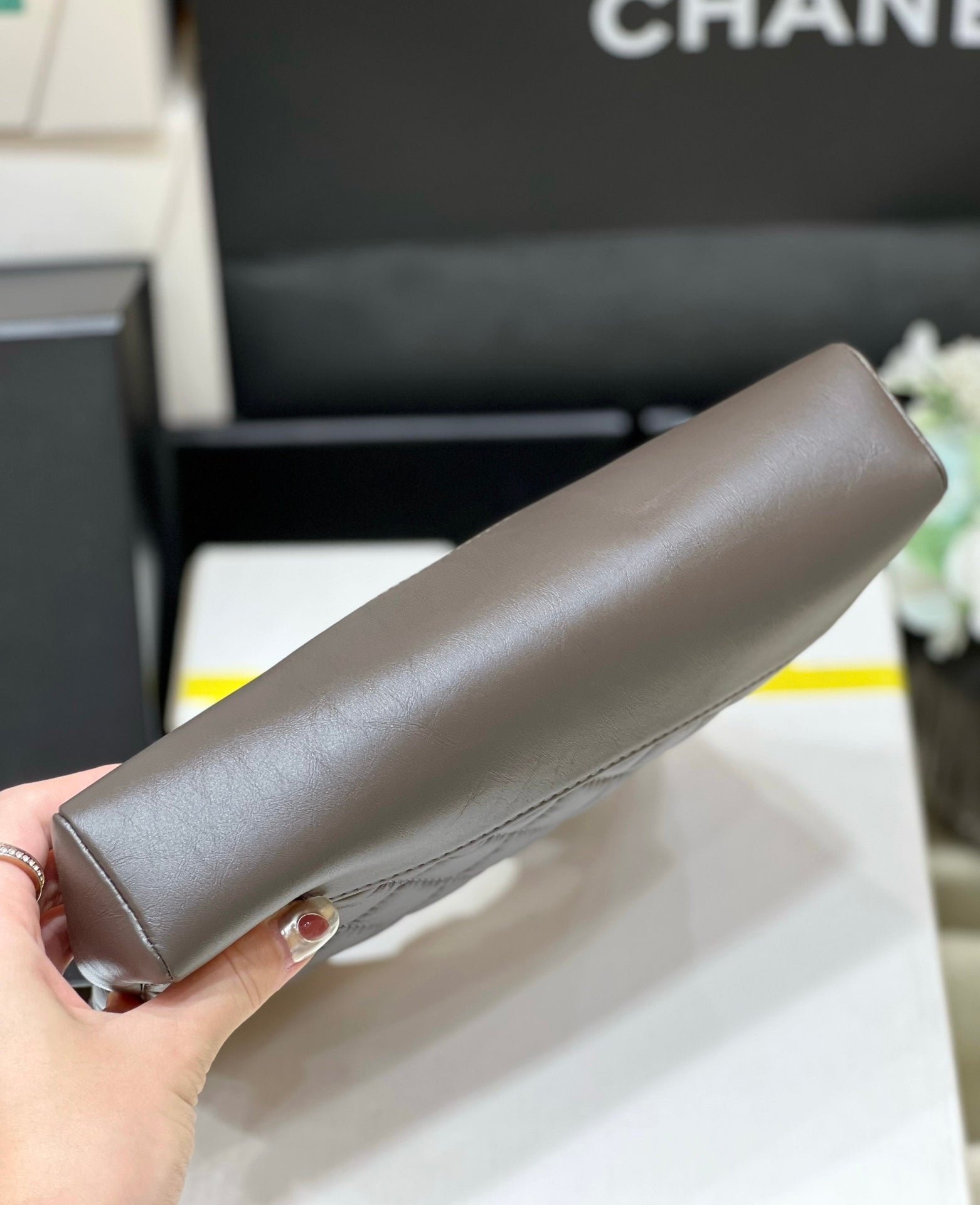 Chanel 31 Suede Bag Dark Taupe Gold