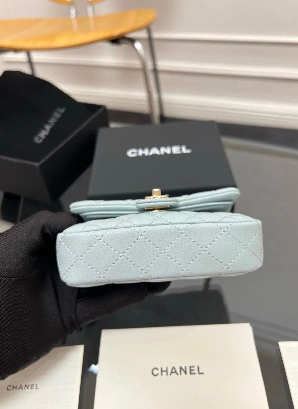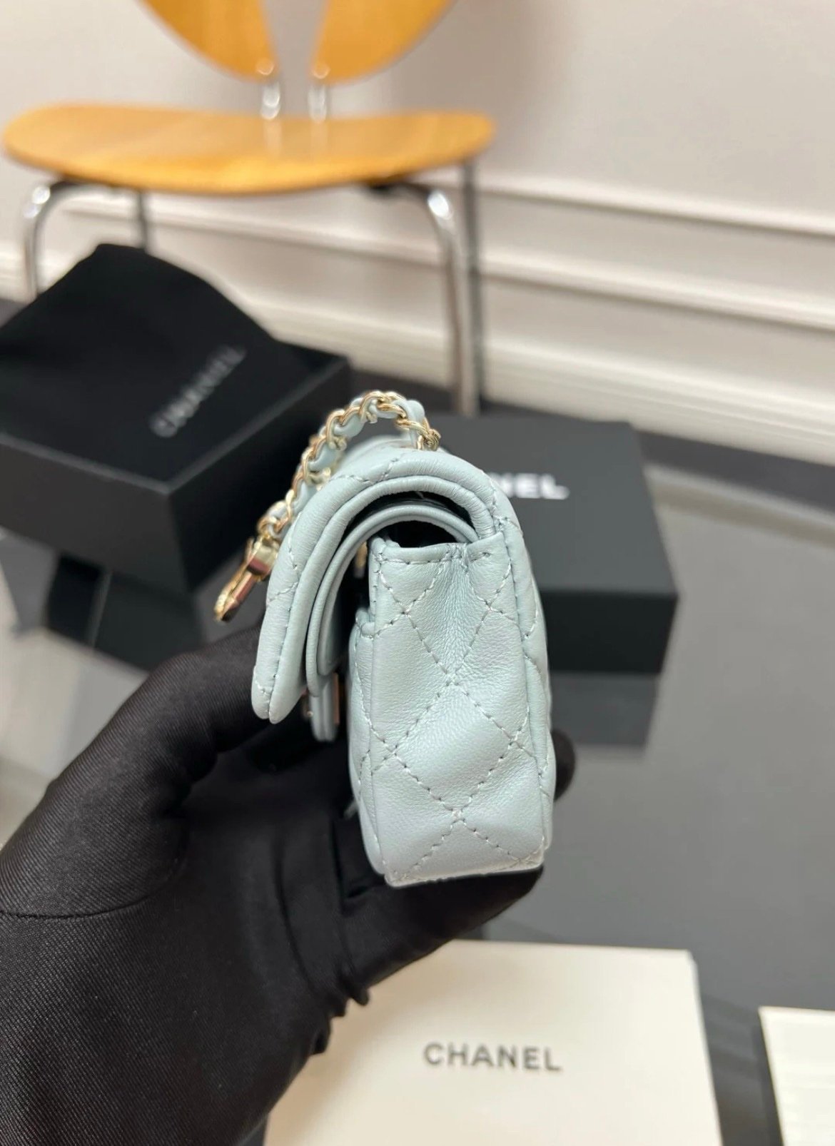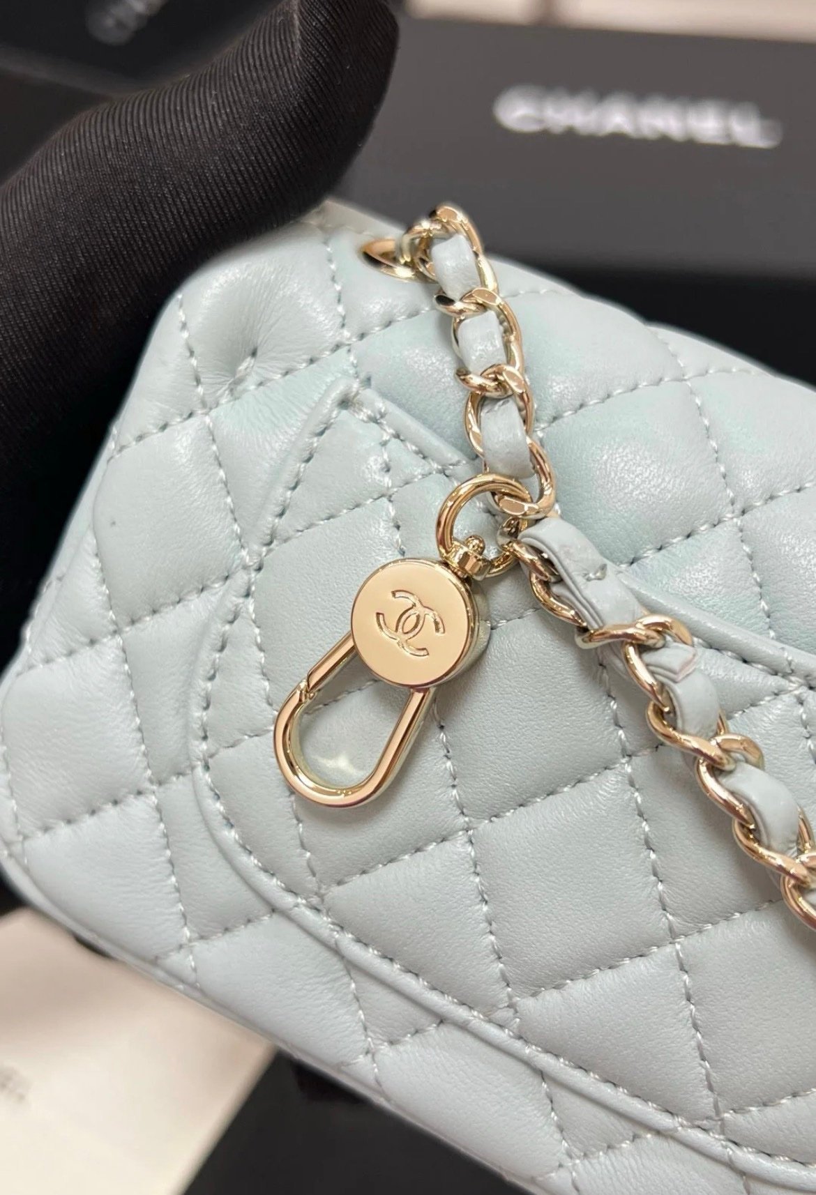 Chanel Mini Flap Charm Bag Light Blue