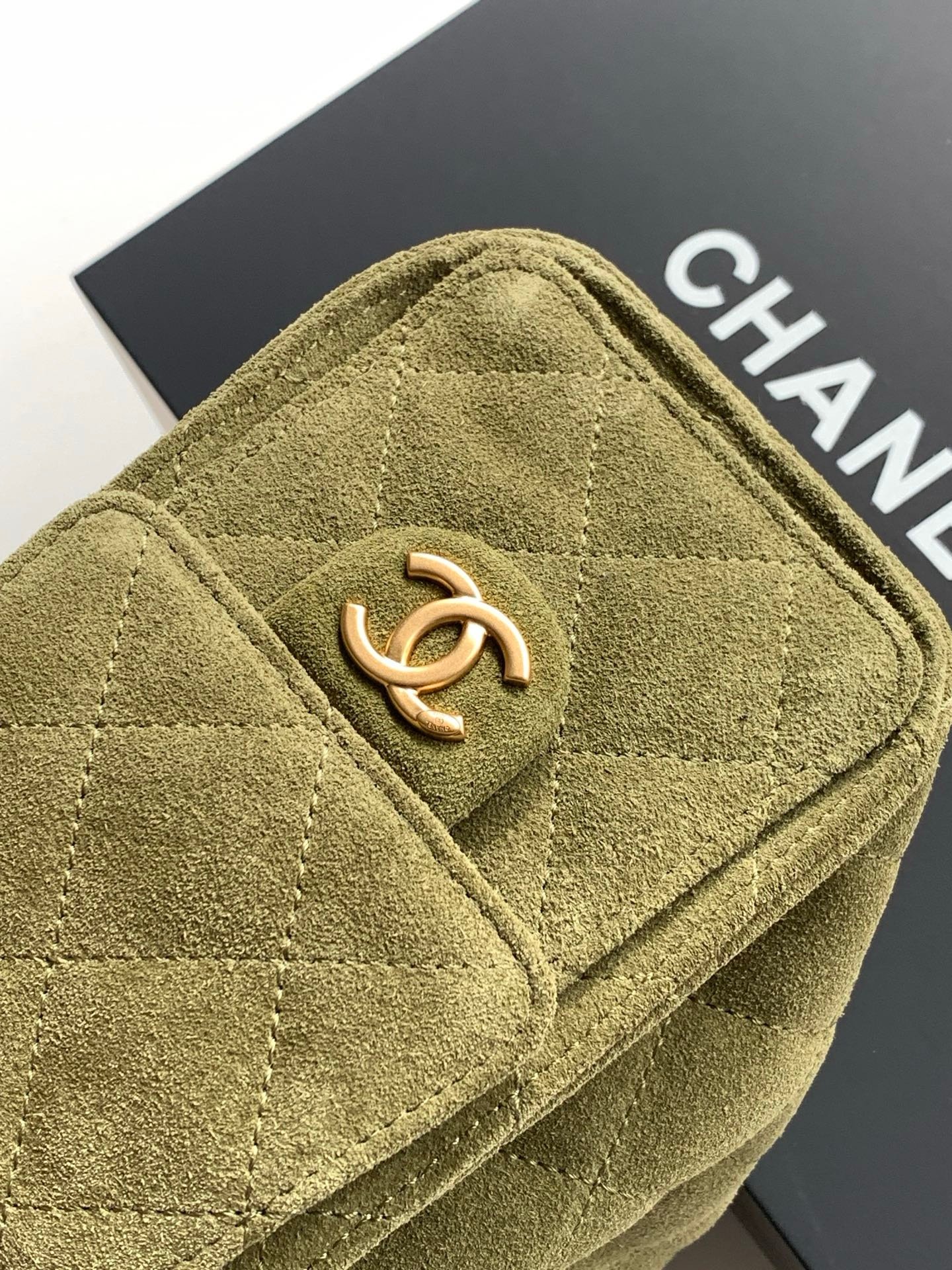 Chanel 25 Khaki Gold Suede in Mini