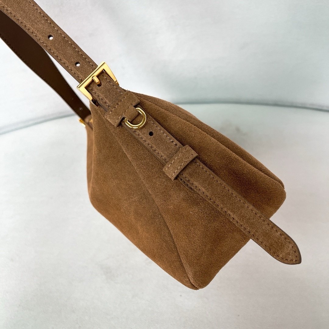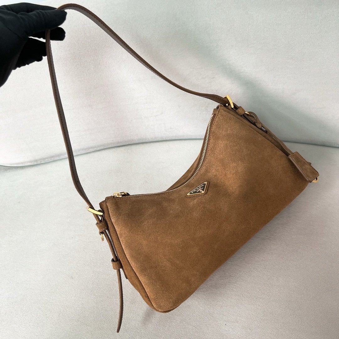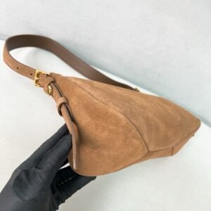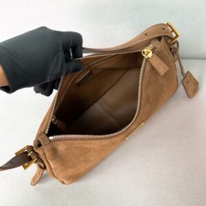 Prada Medium Aimée Bag Brown Gold Suede