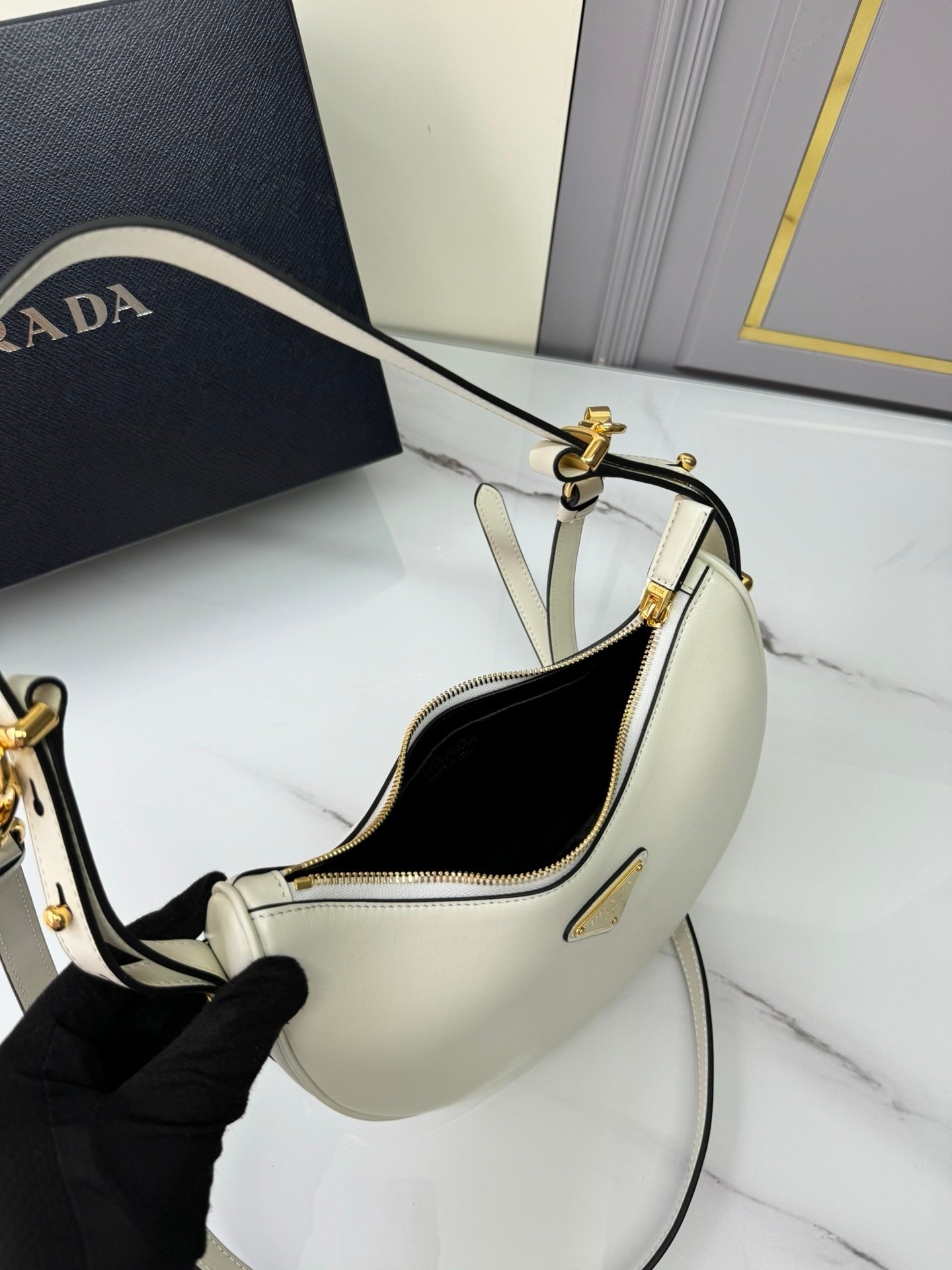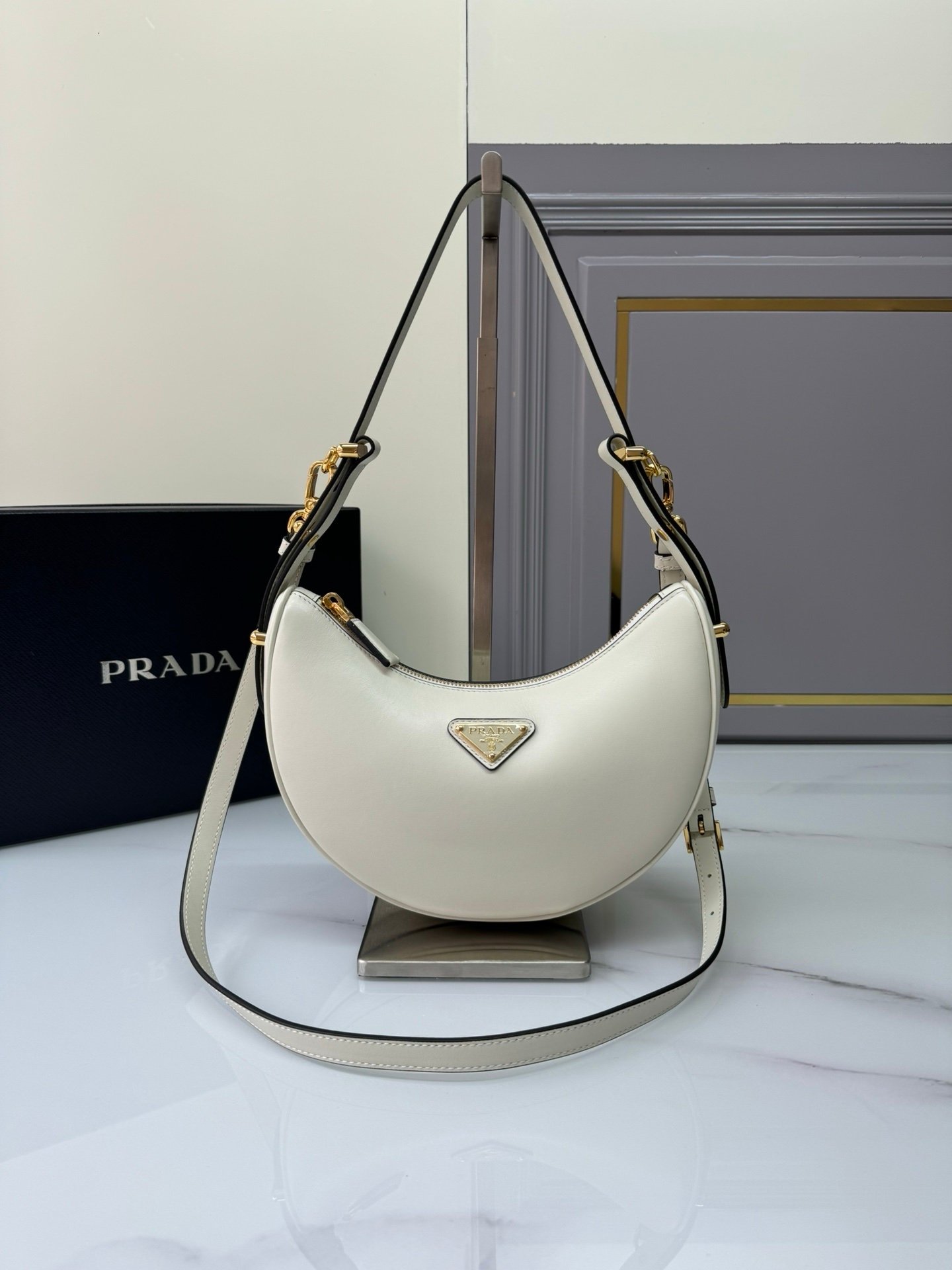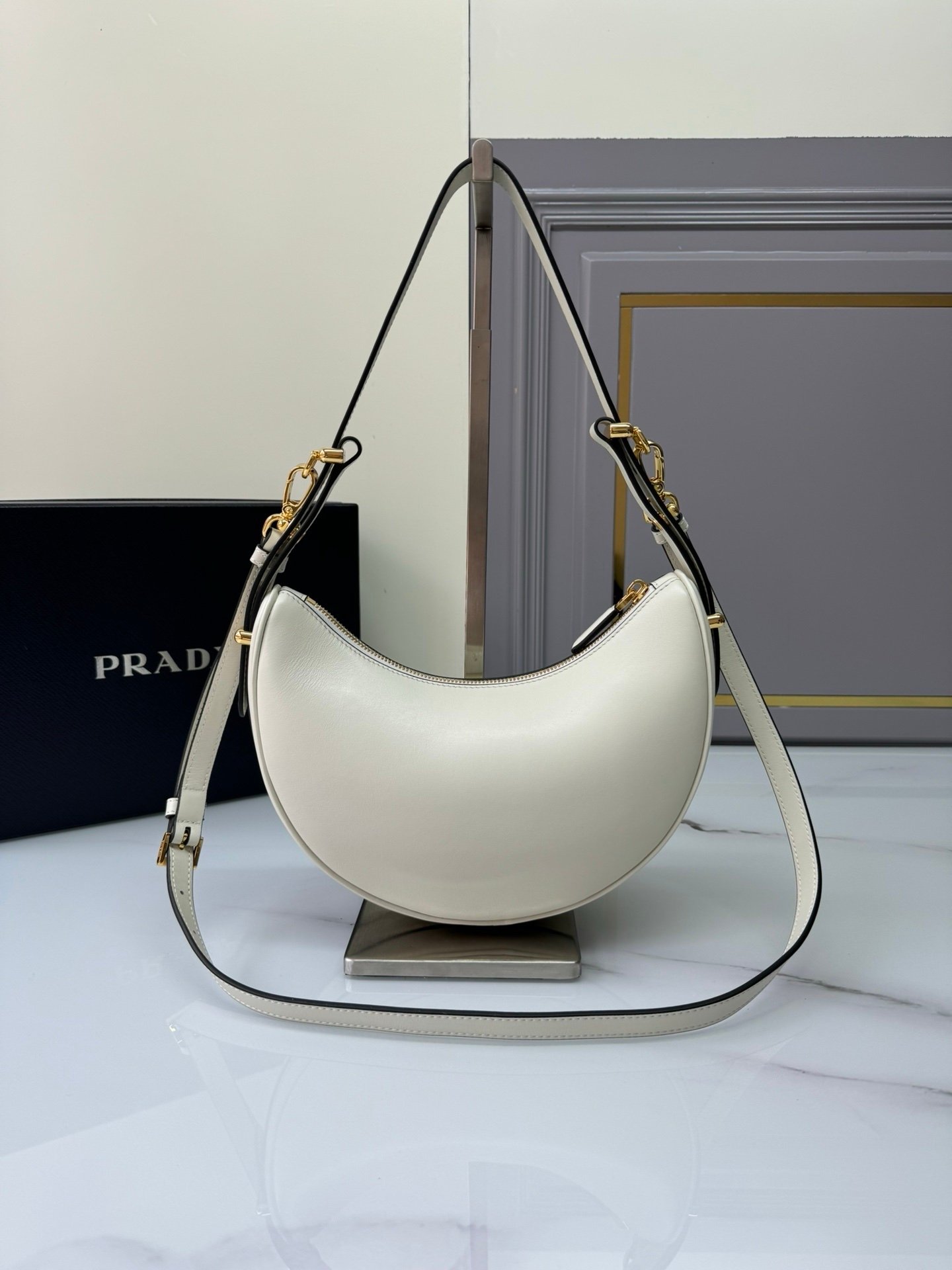 Prada Small Arqué Bag White Gold